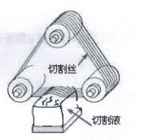首先先按照比例把碳化硅和一種粘性液體(切割液)綜合調(diào)和在一起,用一根非常細的鋼絲繩粘上調(diào)和的切割液(就如水車一樣循環(huán)粘帖)從而達到切割的目的,